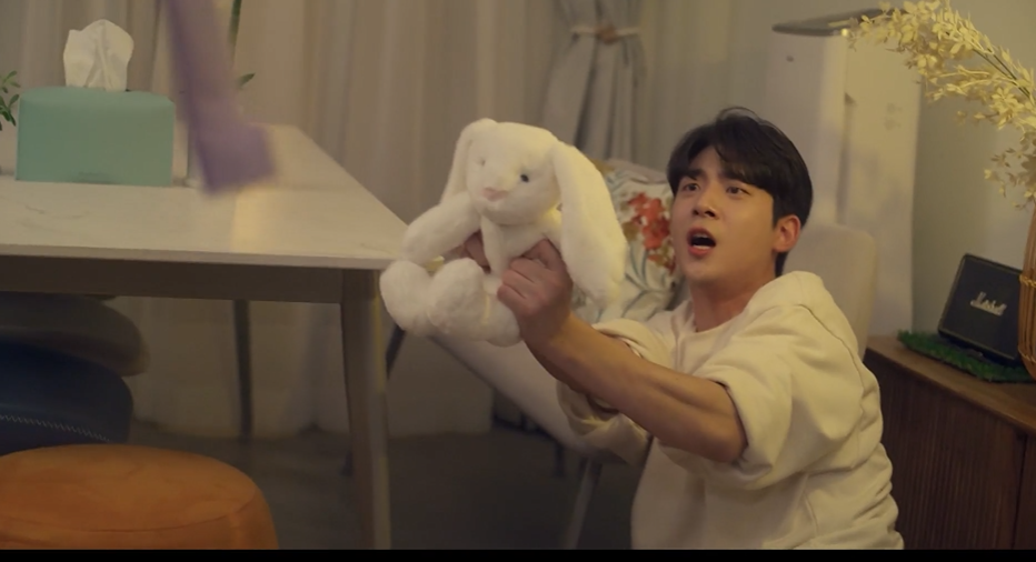 저는 총 2가지의 명장면을 가지고 왔습니다. 첫 번째는 철수의 전설적인 등장 장면인데요. 빈집털이범이 하숙집을 습격하는데 이를 모르는 세 남자 원, 예민, 재우는 그가 새로운 하숙생인 줄 알고 챙겨주거나 조용히 하라고 말을 하죠. 특히 주인인 원이는 옷도 챙겨주고, 집도 안내해주며, 밥도 챙겨주는 웃픈 상황을 연출합니다. 하지만 실체는 드러나는 법! 그는 칼을 들고 와서 세 명을 위협하면서 가진 것 다 내놓으라고 합니다. 그렇게 칼부림이 계속되자 각자 막을 도구들을 하나씩 가져오는데요. 예민이는 프라이팬, 재우는 청소 밀대를 가져와서 공격하거나 막으려고 합니다. 하지만 우리 원이... 도구를 못 찾다가 옆에 있는 토끼 인형으로 막으려고 하는데요. 빈집털이범은 비웃으면서 그를 해치려고 하는데 이때 철수가 등장해서 제압을 해버립니다. 아니 그만 멋지자... 제발...